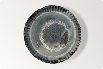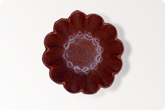 花びらの形をした珍しいお皿(黒い土に白い釉薬)