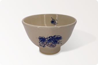 内側は乳白(にゅうはく)釉、外側は乳白釉に海鼠釉を軽く吹き付けています